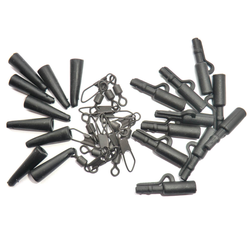 10 X SIZE 8 AMERICAN SNAP SWIVELS THAT FIT PERFECTLY IN THESE LEAD CLIPS ENABLING YOU TO CHANGE RIGS QUICKLY AND SIMPLY BY OPENING THE GATE ON THE SNAP