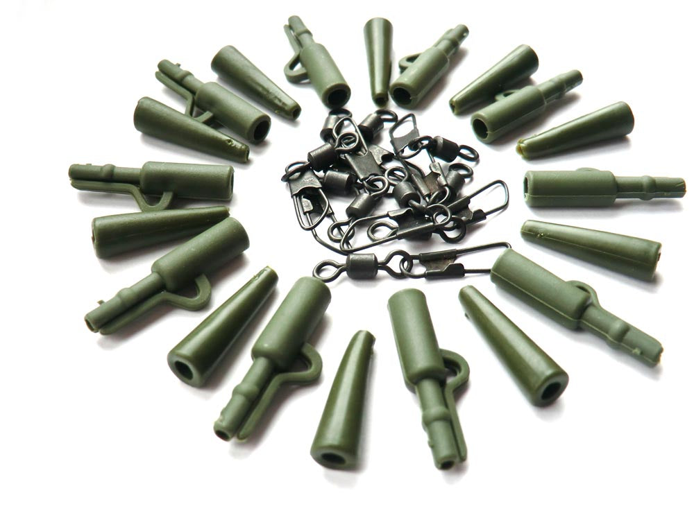 10 X SIZE 8 AMERICAN SNAP SWIVELS THAT FIT PERFECTLY IN THESE LEAD CLIPS ENABLING YOU TO CHANGE RIGS QUICKLY AND SIMPLY BY OPENING THE GATE ON THE SNAP